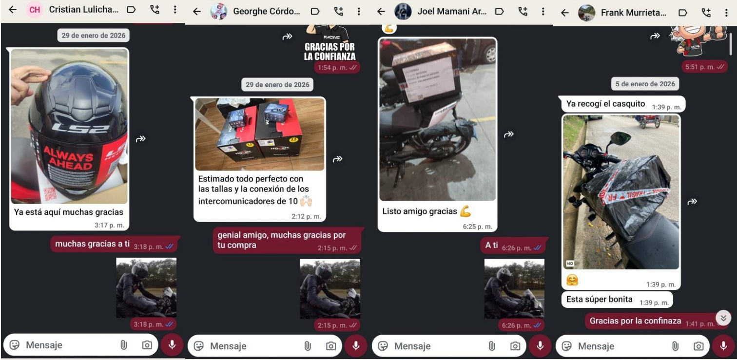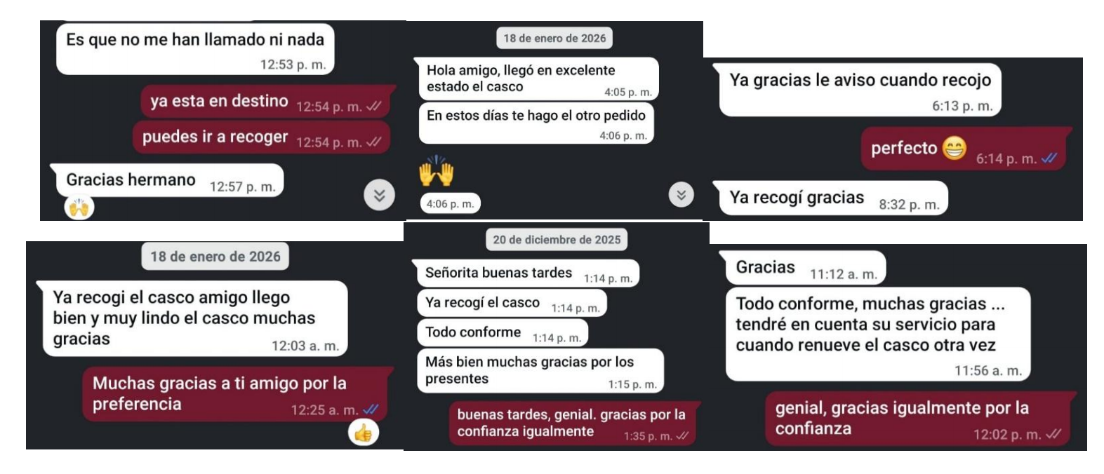 Cada entrega cuenta una historia. Estas son capturas reales de clientes que recogieron sus pedidos, mostrando el respaldo y la confianza que día a día nos depositan.