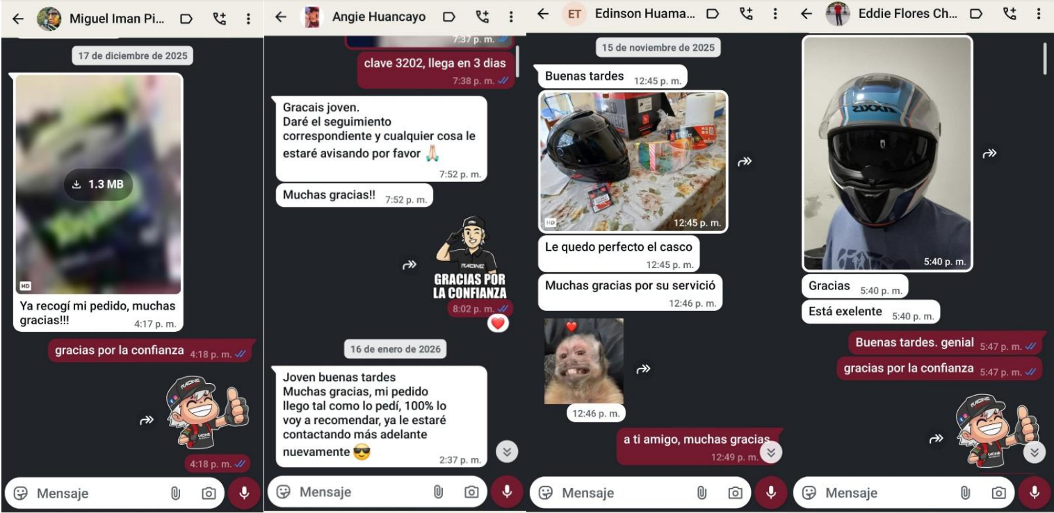 Comprar en RA1 Helmets es hacerlo con confianza. Con más de 5 años en el mercado de cascos, una tienda física en Trujillo y envíos comprobables a todo el Perú, mostramos cada despacho y empaquetado de forma pública, respaldados por miles de seguidores y clientes satisfechos que confían en nuestro trabajo.